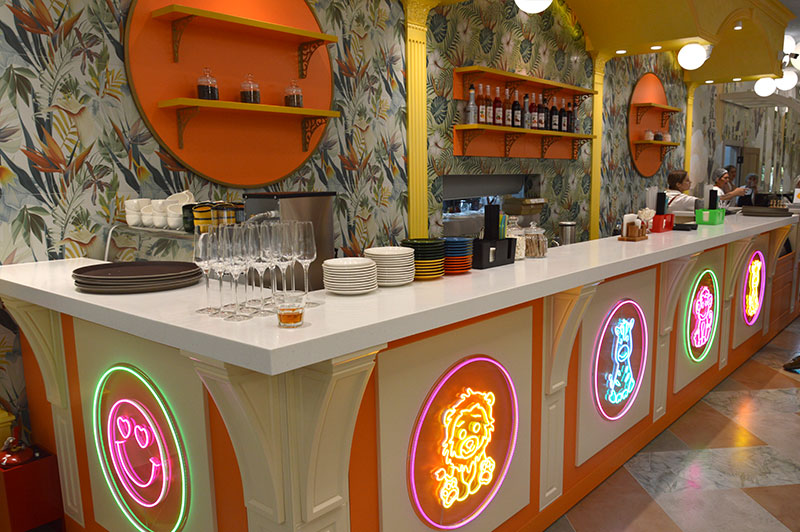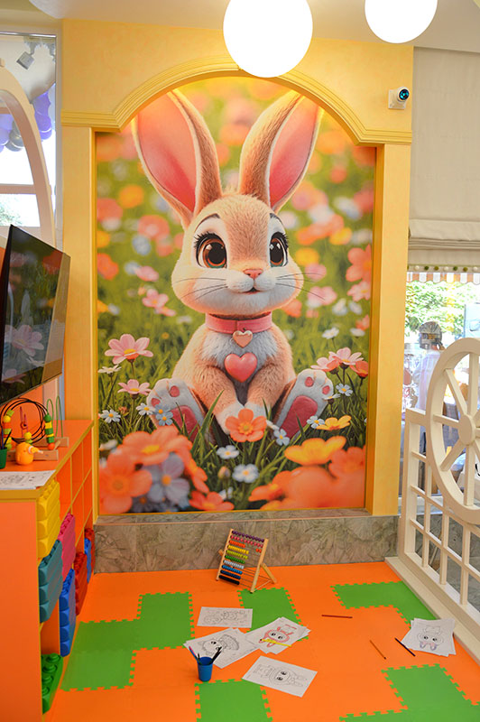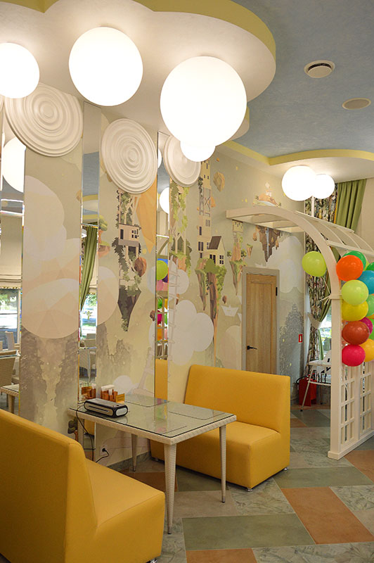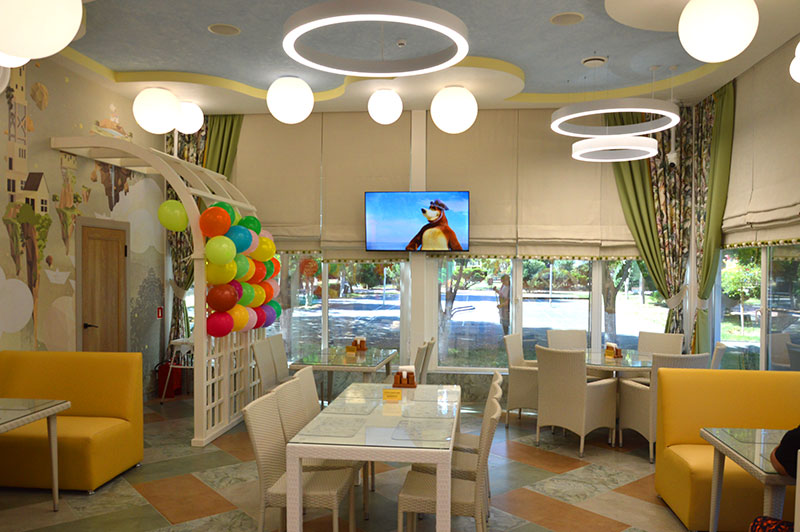 Его название соответствует яркому, радужному оформлению здания. Оно является украшением не только сквера, но и города. Теперь в обновленный и яркий объект общественного питания можно прийти всей семьёй и хорошо отдохнуть в современном интерьере, который уже привлек маленьких горожан, организовать детский семейный праздник.