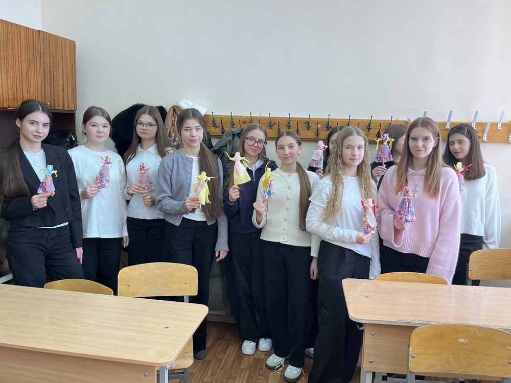 В ходе мастер-класса учащиеся школ города не только освоили технику создания традиционной куклы-Масленицы, но и узнали о ее сакральном значении. Ребятам рассказали, как такие куклы становились символами уходящей зимы, как с ними были связаны обряды, и почему в их создании не использовались иглы и ножницы.